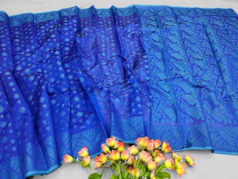 Nil Jamdani Saree Combo Set for Women – Saree Churi Necklace Gazra Chocolate Mehedi Chirkut Mirror Etc